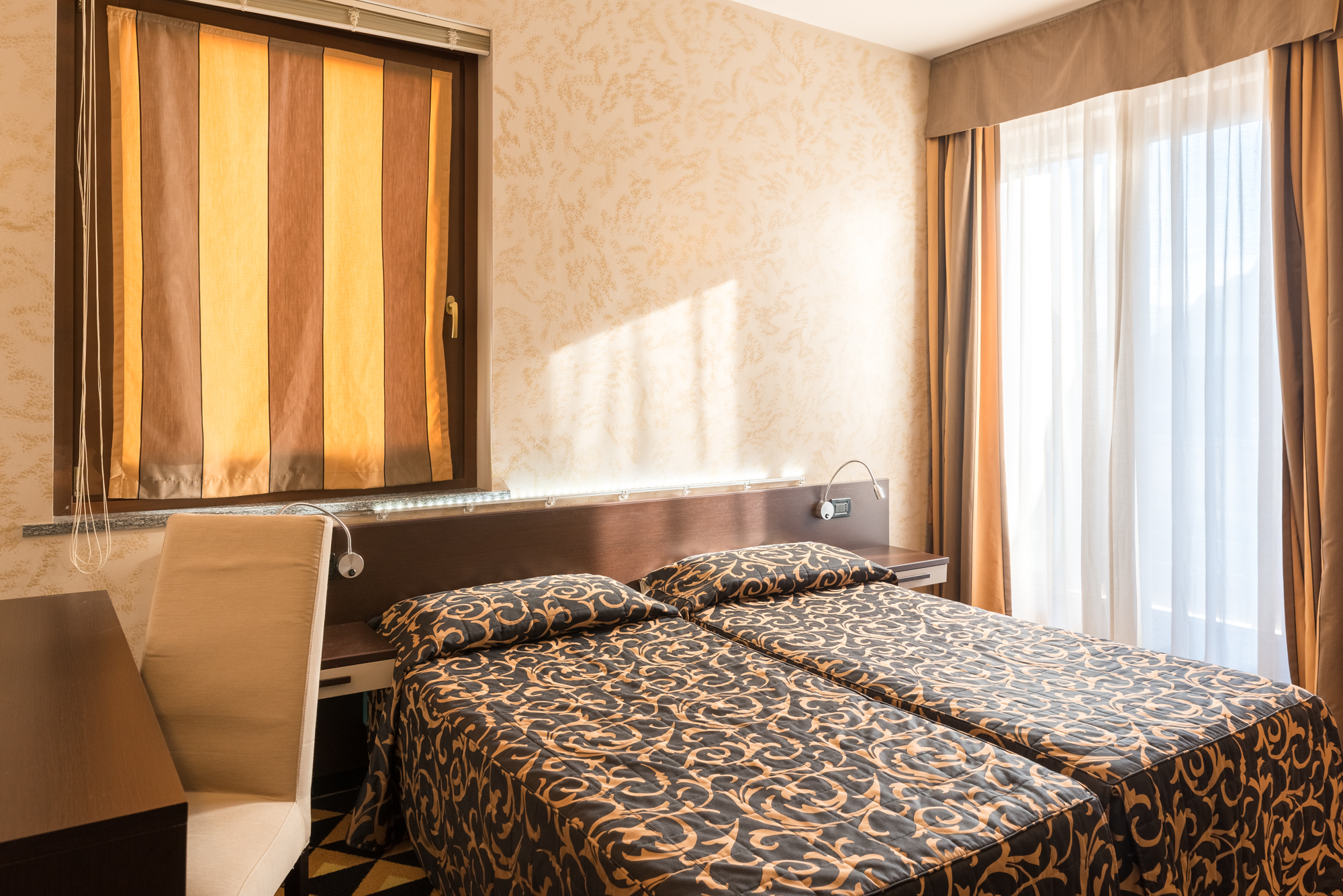 Camere singole, doppie o matrimoniali con possibilità di terzo letto o culla su richiesta.Quasi tutte dotate di ampio balcone, si possono richiedere con vista sulla vallata o sui monti che sovrastano Saint-Vincent.